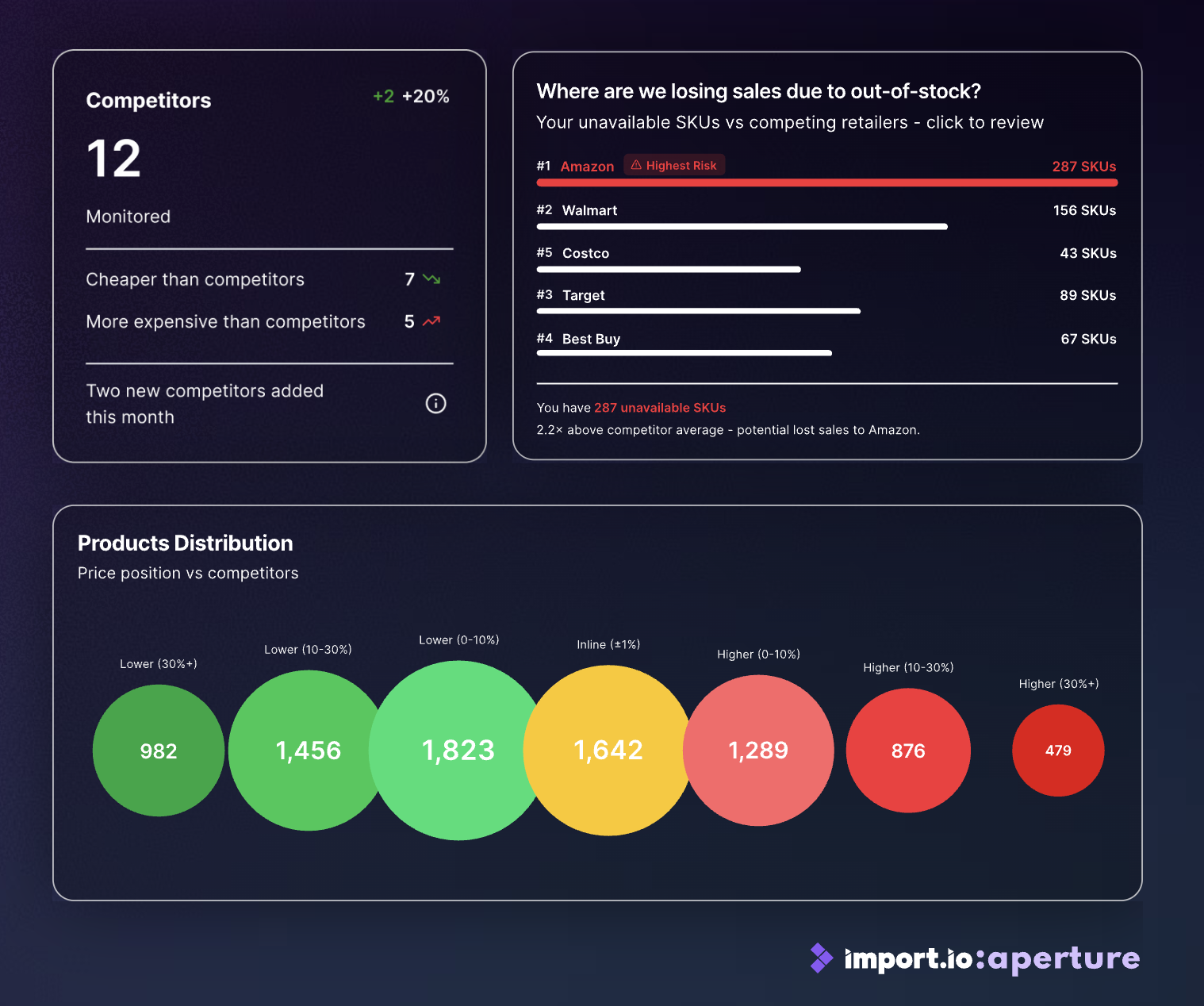 With Import.io aperture, businesses can use pricing intelligence software, digital shelf analytics, and AI pricing tools in a single platform.