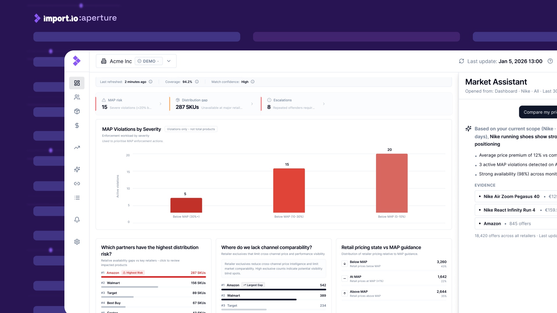 Import.io aperture is a pricing intelligence software platform that supports digital shelf visibility and competitor monitoring.