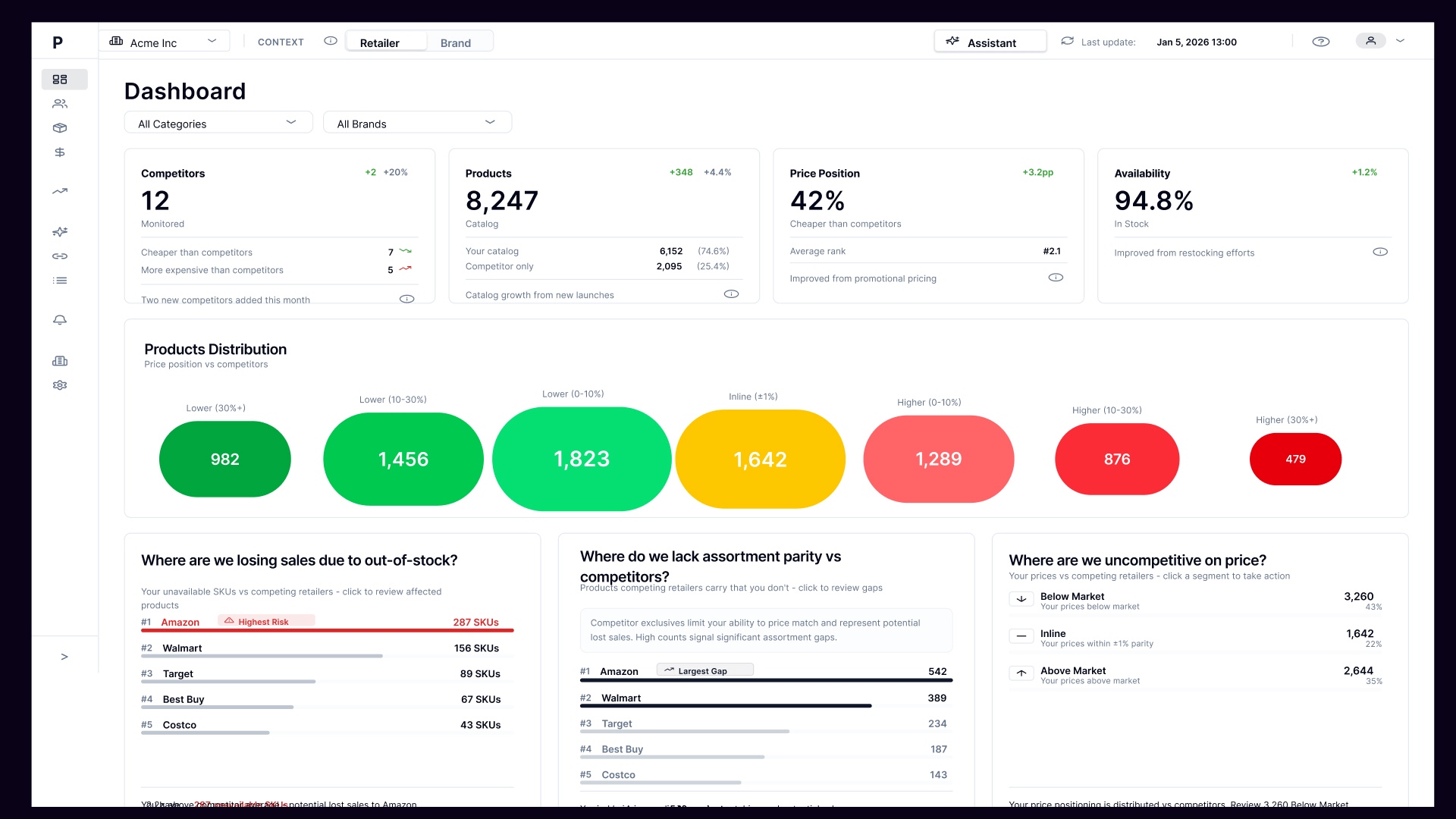Using web scraping, businesses can monitor whether products are in stock across retailers and identify potential revenue risks.